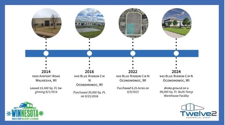 Beginning in 2014, Zach Noble and Twelve2 Commercial Group have used their market expertise to assist Winnesota in discovering locations that are a perfect fit for their Cold Chain Logistics and Warehousing business. Hard to believe it all started with a satellite warehouse….but TEN years, FOUR deals and ONE lifelong relationship later, I couldn’t be more proud of Nick Olsen and the entire team at Winnesota. Throughout our time working together, you’ve made me feel like an extension of the Winnesota family and I can’t wait to see what the next ten years brings!